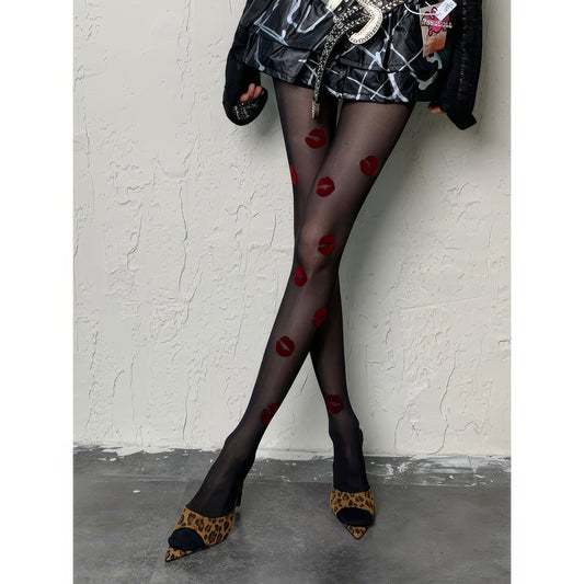 Allover Lip Print Sheer Tights