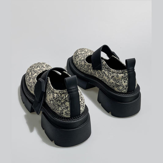 Apricot Floral Jacquard Platform Mary Janes