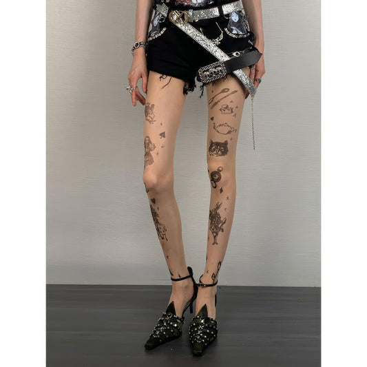 Alice Print Sheer Tights