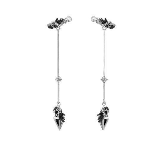 Black Leaf Crystal Drop Earrings