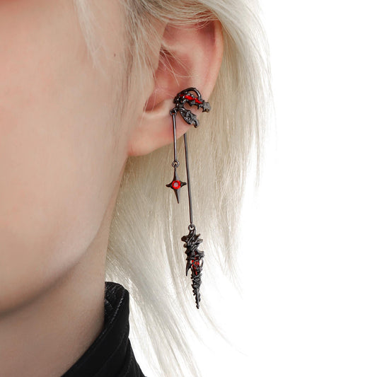Black Ornate Red Gem Ear Cuffs