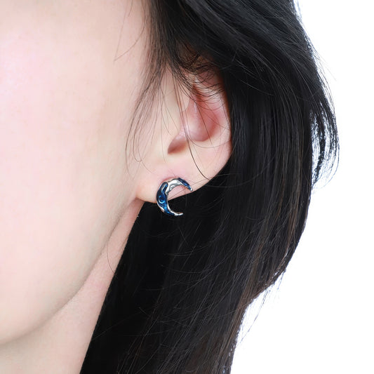 Blue Crescent Textured Stud Earrings