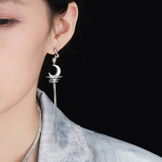 Moon Drop Asymmetrical Dangle Earrings