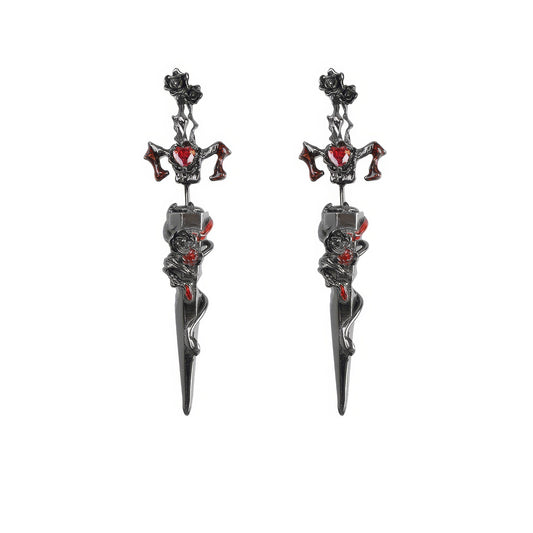 Garnet Cross Dagger Drop Earrings