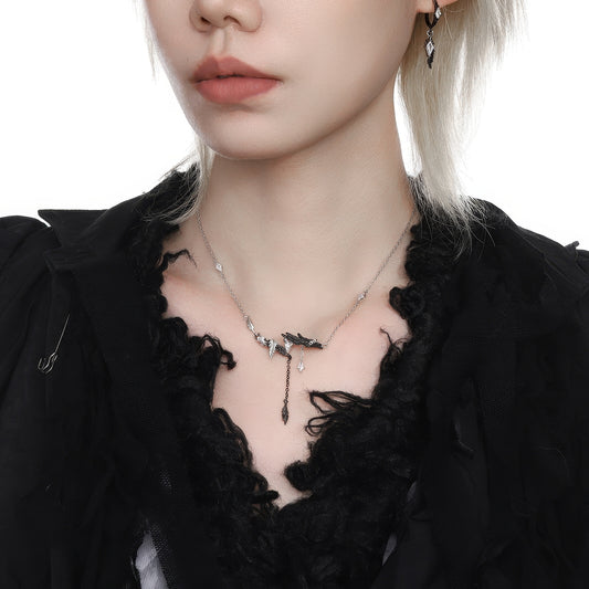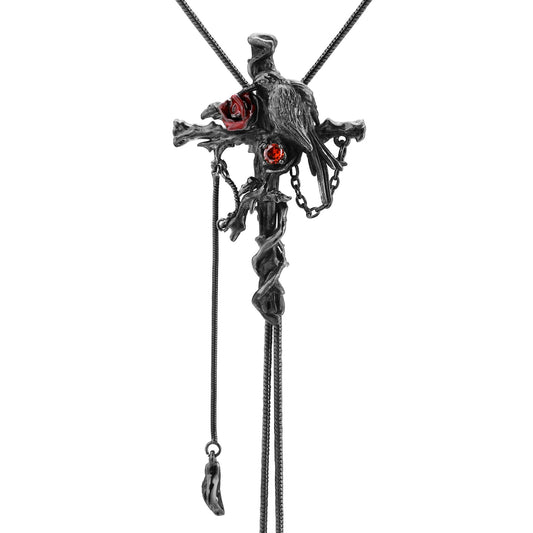 Hanging Raven Cross Lariat Necklace
