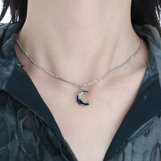 Silver Blue Crescent Moon Necklace