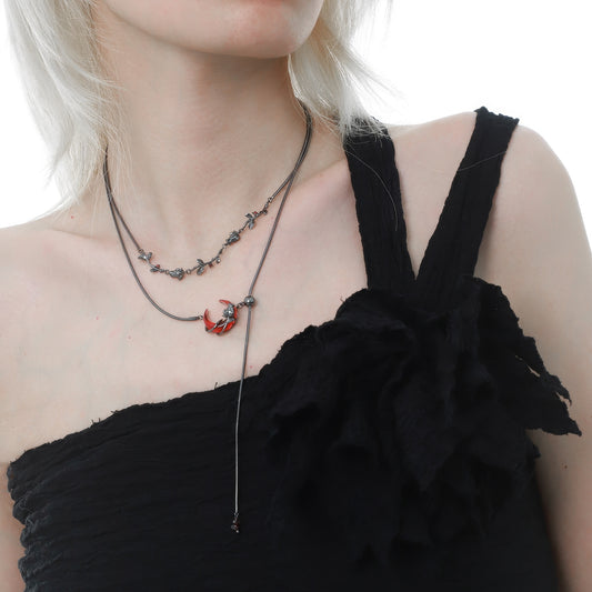 Red Horned Beetle Layered Necklace