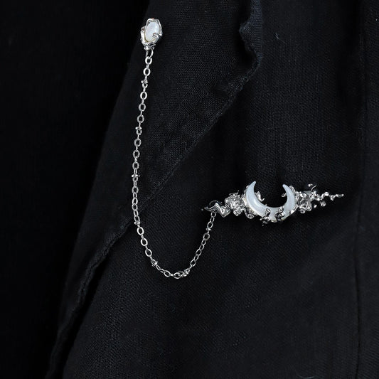 Silver Crescent Chain Brooch