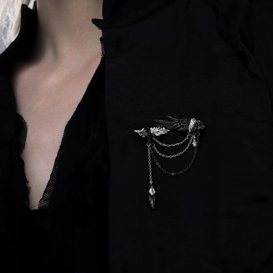 Feather Draped Dual-Tone Brooch