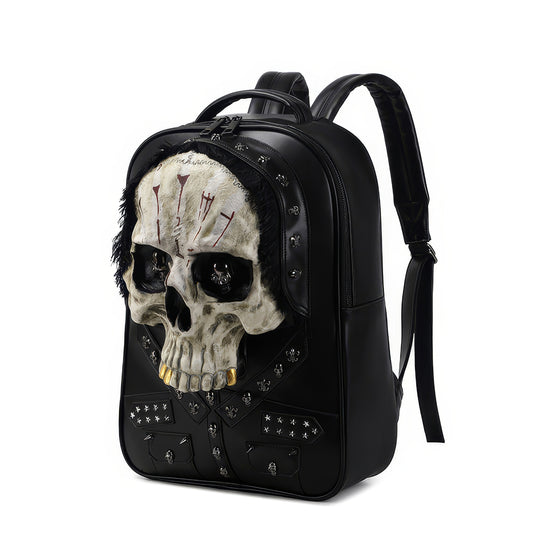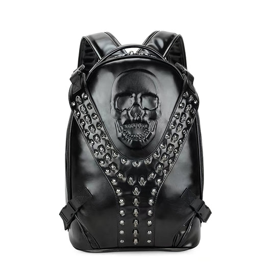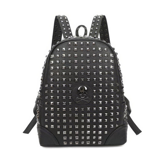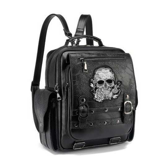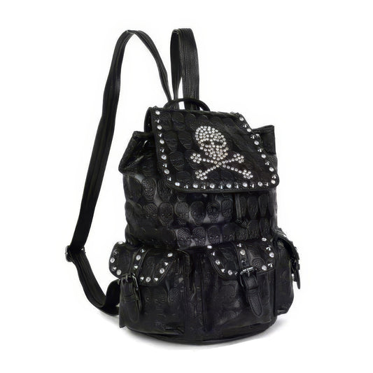 Embossed Skull Studded Leather Backpack