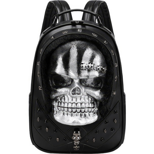 Silver Skull Embossed Faux Leather Backpack