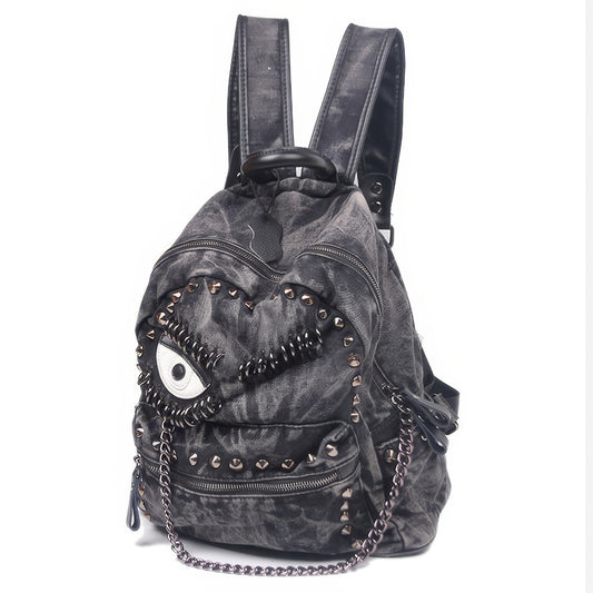 Washed Denim Eye Patch Stud Backpack