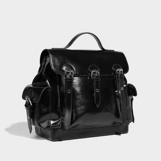 Triple Buckle Glossy Chain Backpack