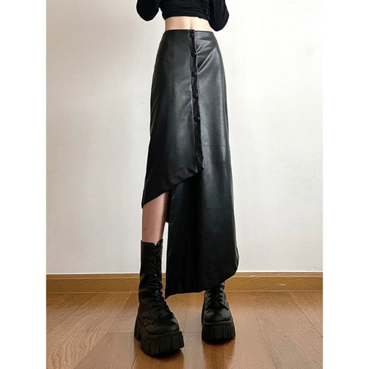 Asymmetrical Buttoned Leather Skirt