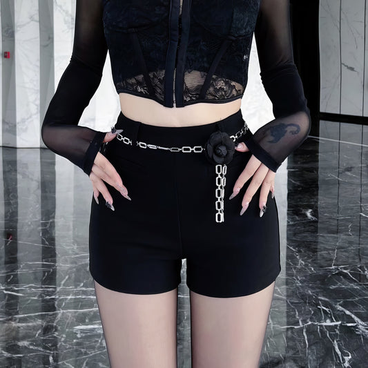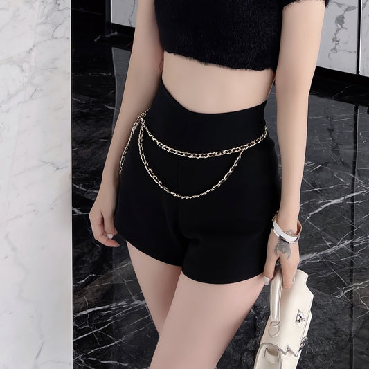 Chain Detail High-Waisted Black Shorts
