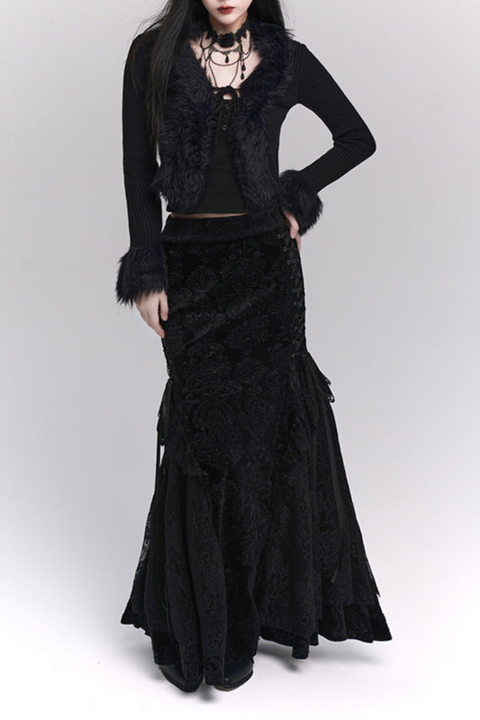 Velvet Brocade Lace-Up Mermaid Skirt