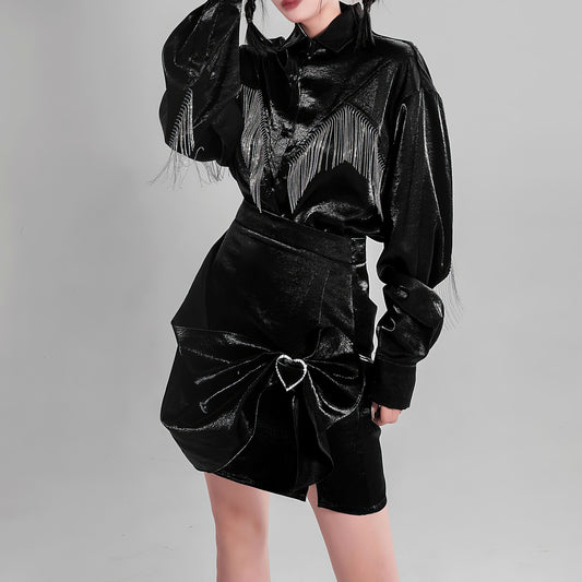 Asymmetrical Heart Brooch Satin Skirt