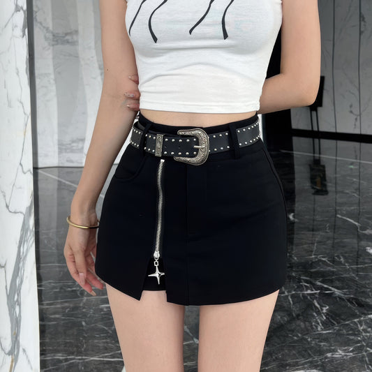 Studded Zip Detail Belted Skort