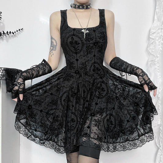 Velvet Flocked Lace Mini Dress