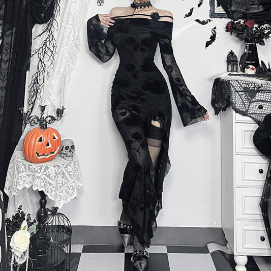 Skeleton Print Long Sleeve Maxi Dress