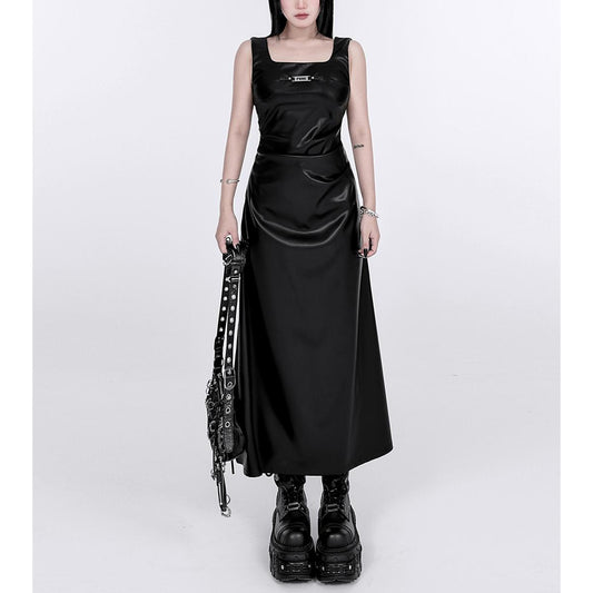 • Satin Square Neck Sleeveless Maxi Dress