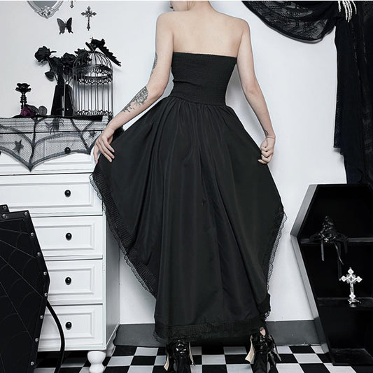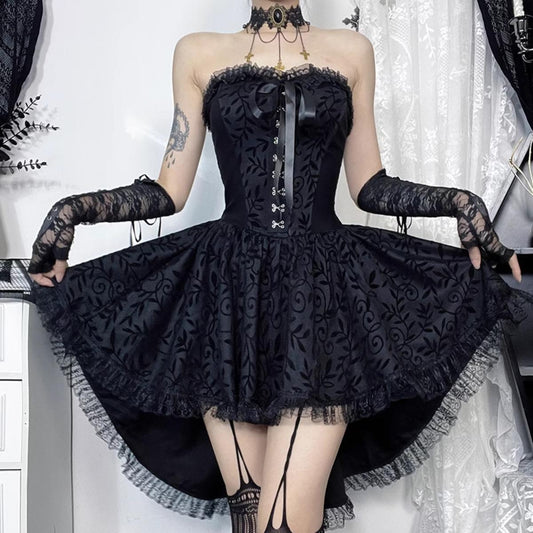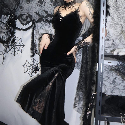 Velvet Mesh Dot Sleeve Black Midi Dress
