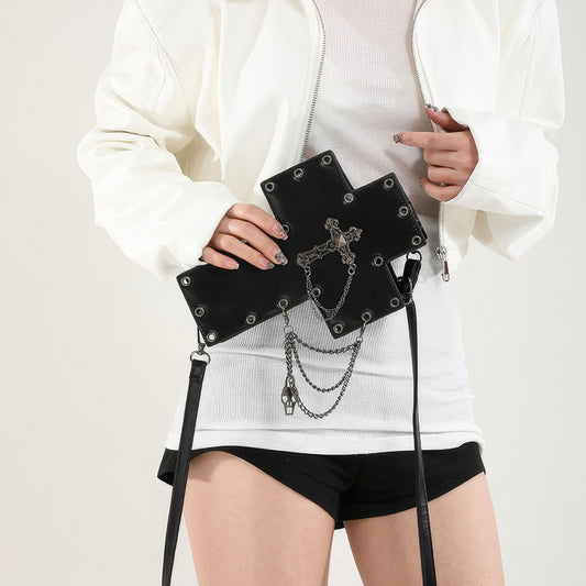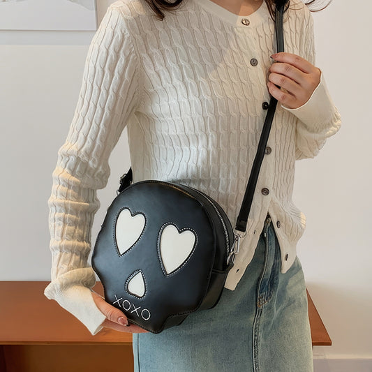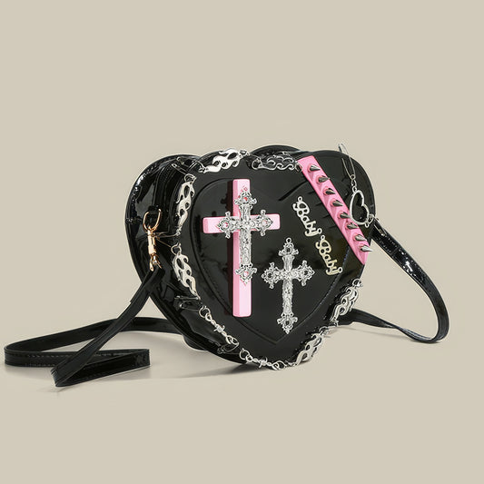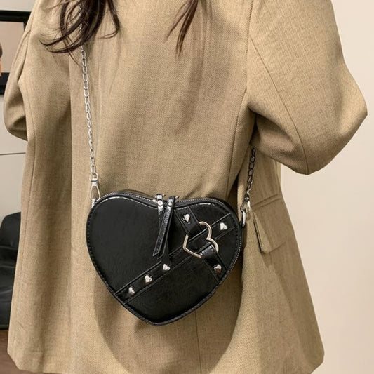 Heart Buckle Studded Faux Leather Crossbody Bag