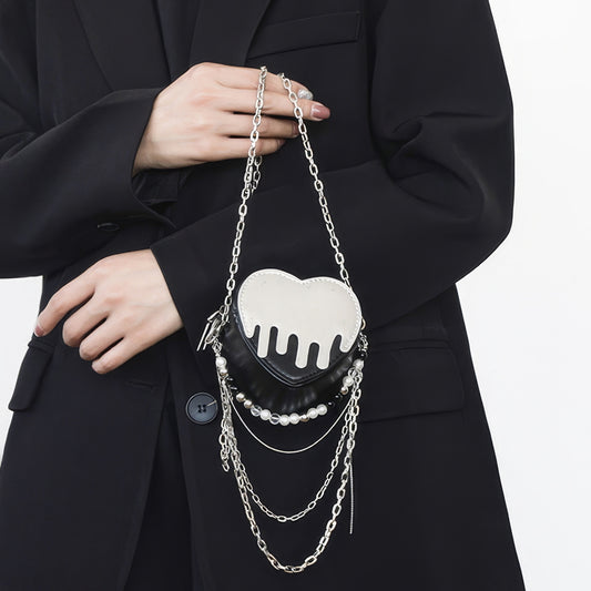 Rope Wrapped Heart Shape Faux Leather Shoulder Bag