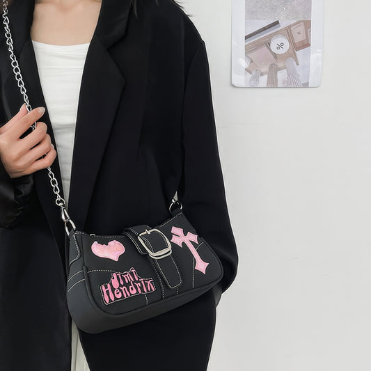 Pink Patch Chain Buckle Strap Shoulder Bag