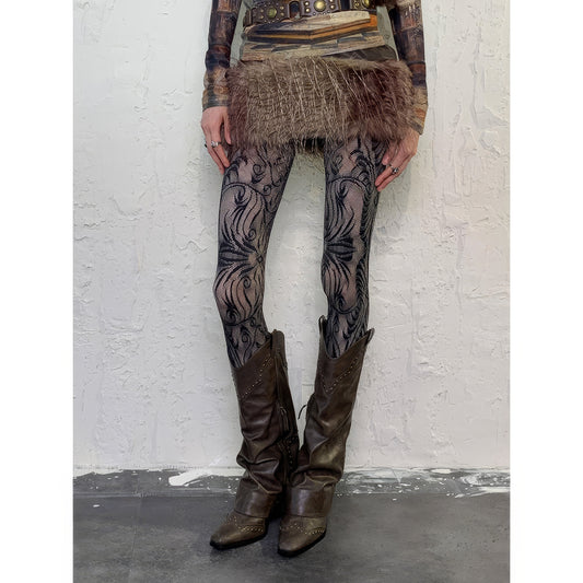 Baroque Leaf Mesh Pattern Tights