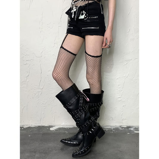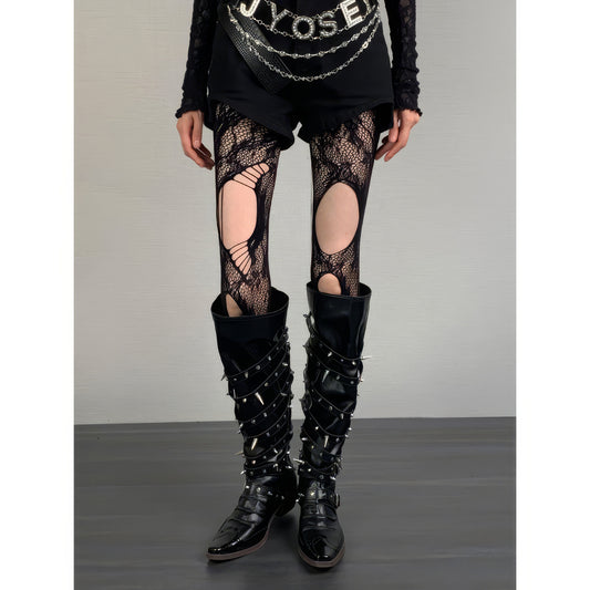 Distressed Cutout Spider Lace Tights