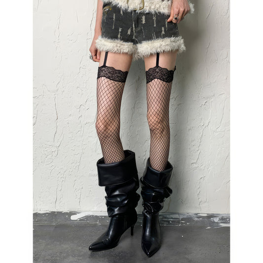 Lace Trim Fishnet Garter Tights
