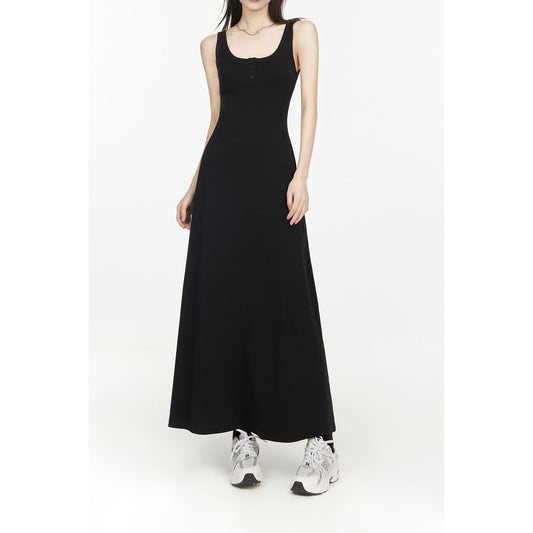 • Sleeveless Ribbed Bodice Gathered Maxi Dress