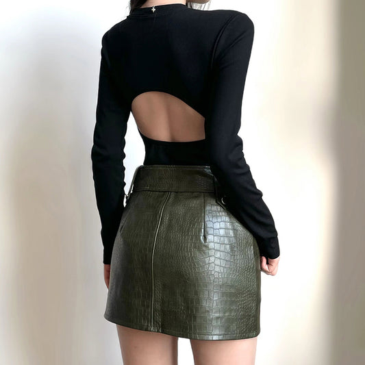 Cut-Out Back Long Sleeve Bodysuit