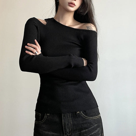 Asymmetrical Cut-Out Ribbed Top
