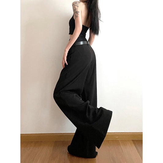 Wide Leg Pleated Black Trousers