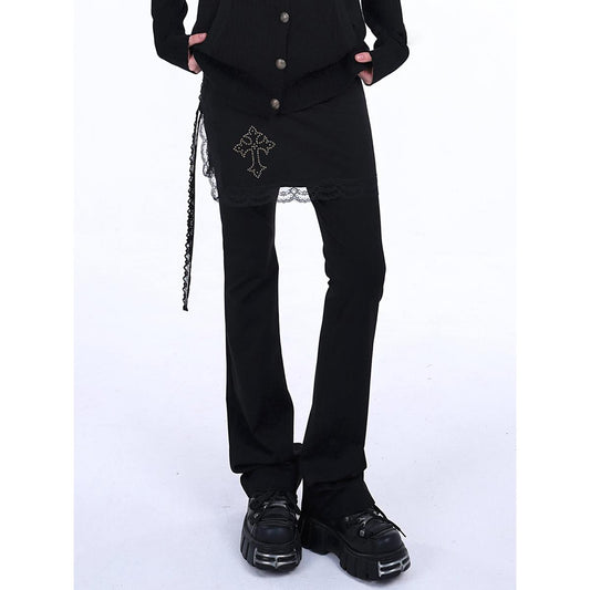 Lace Trim Flared Pants with Layered Skirt Detail
