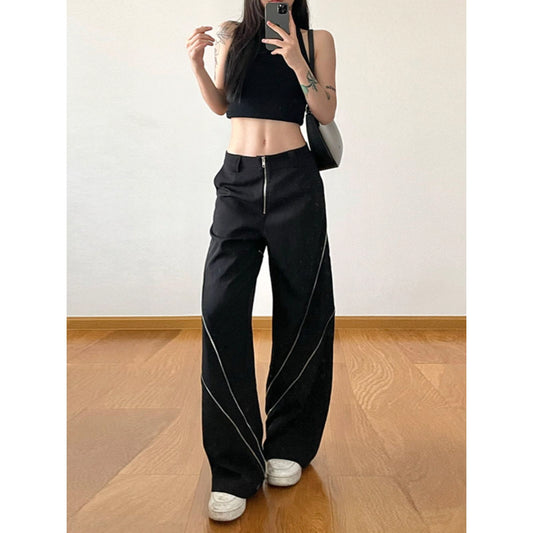 Zipper Detail Wide-Leg Pants