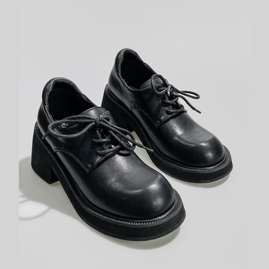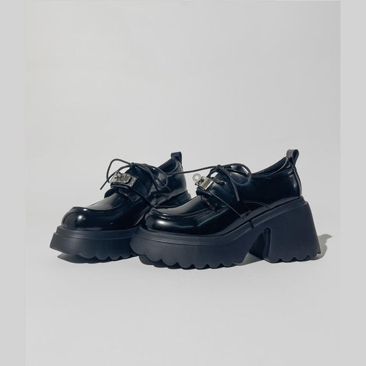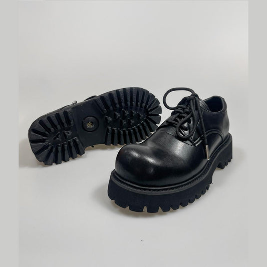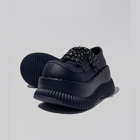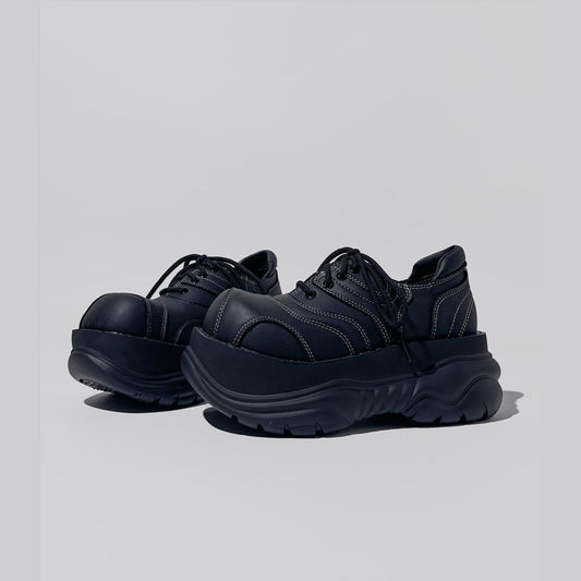 Black Chunky Lug Sole Derby Shoes