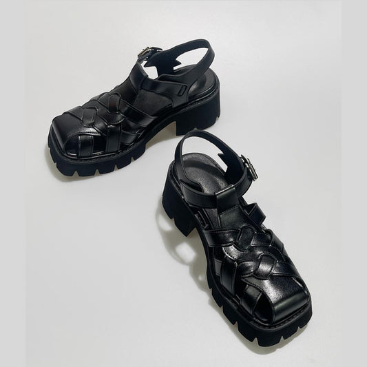 Woven Leather Platform Sandals