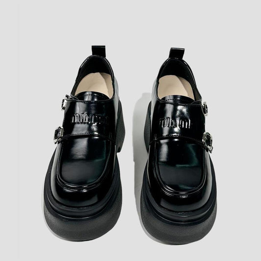 Double Buckle Patent Platform Loafers