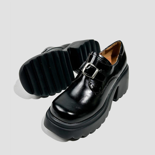 Black Buckle Chunky Heel Loafers