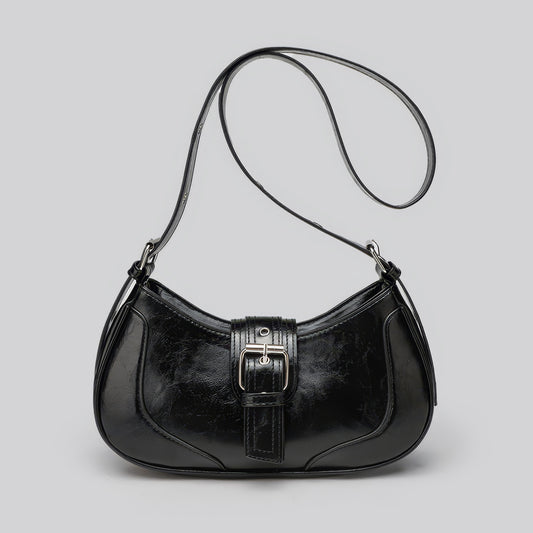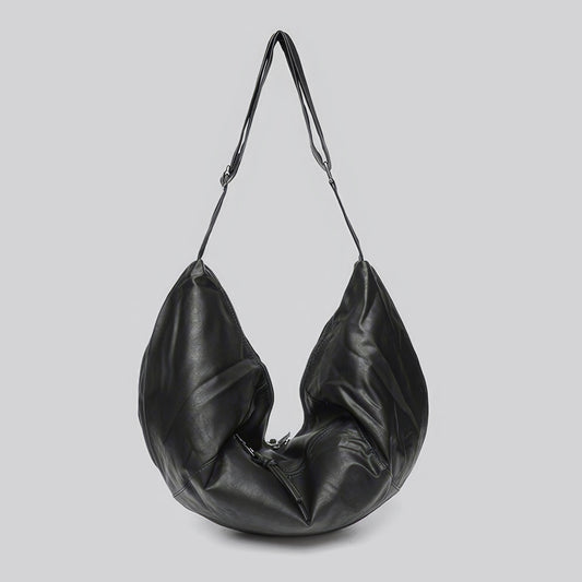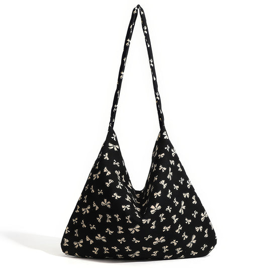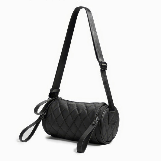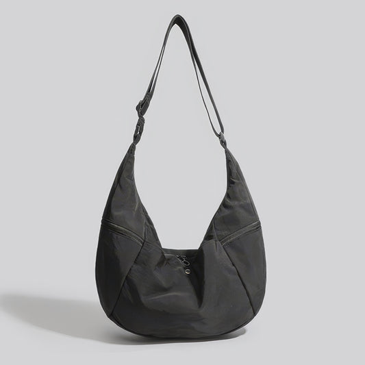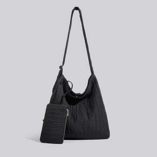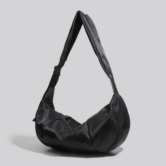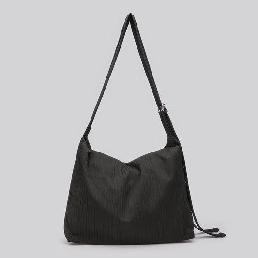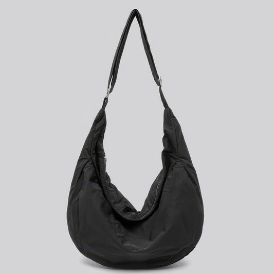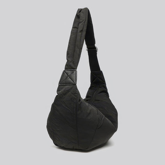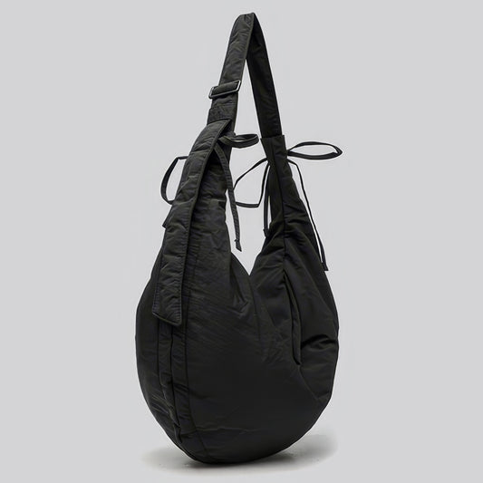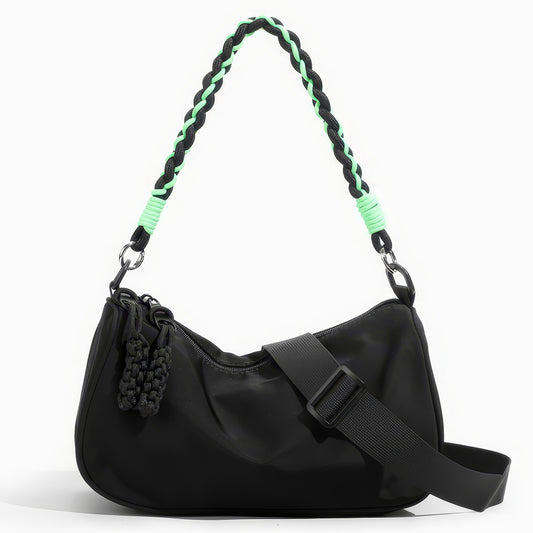 Two-Tone Rope Strap Black Nylon Shoulder Bag