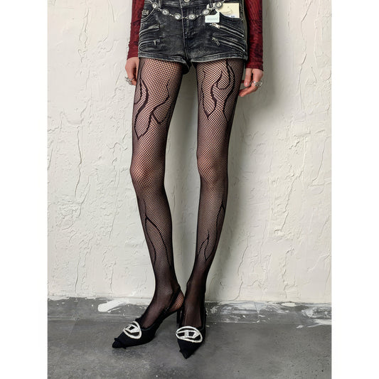 Flame Pattern Fishnet Tights