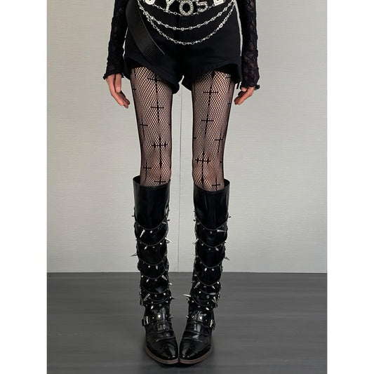 Cross Pattern Mesh Fishnet Tights