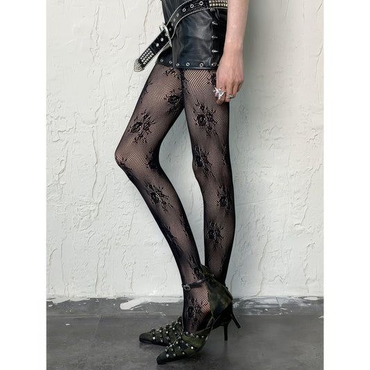 Ruffled Lace Trim Fishnet Thigh-High Stockings