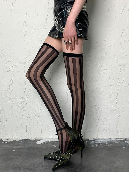 Mesh Panel Glitter Dot Thigh-High Stockings