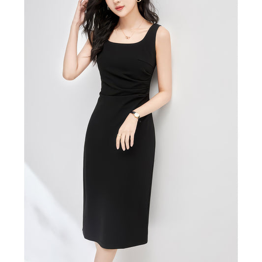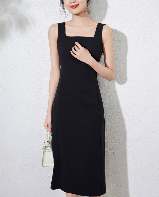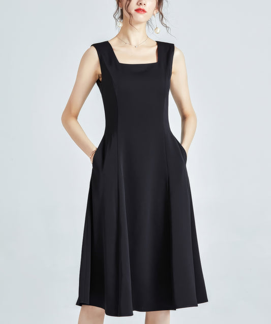 • Square Neck Sleeveless Black Midi Dress