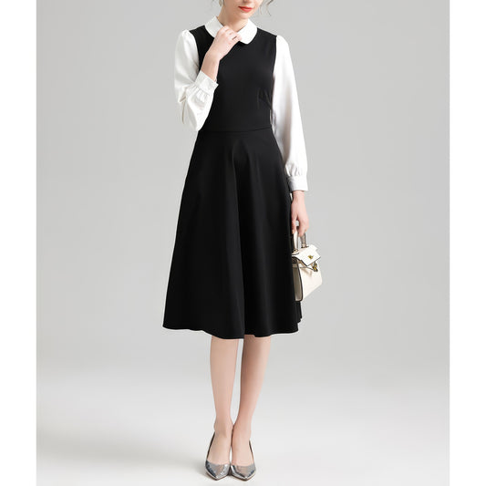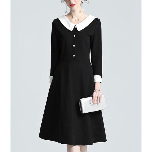 Two-Tone Peter Pan Collar Black Midi Dress