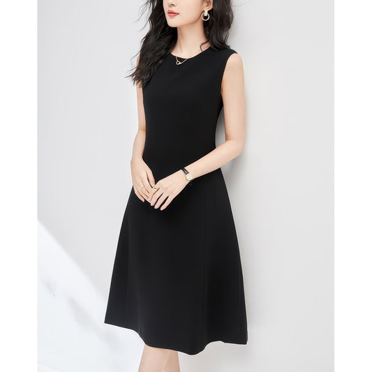 • Sleeveless Minimal Silhouette Black Midi Dress